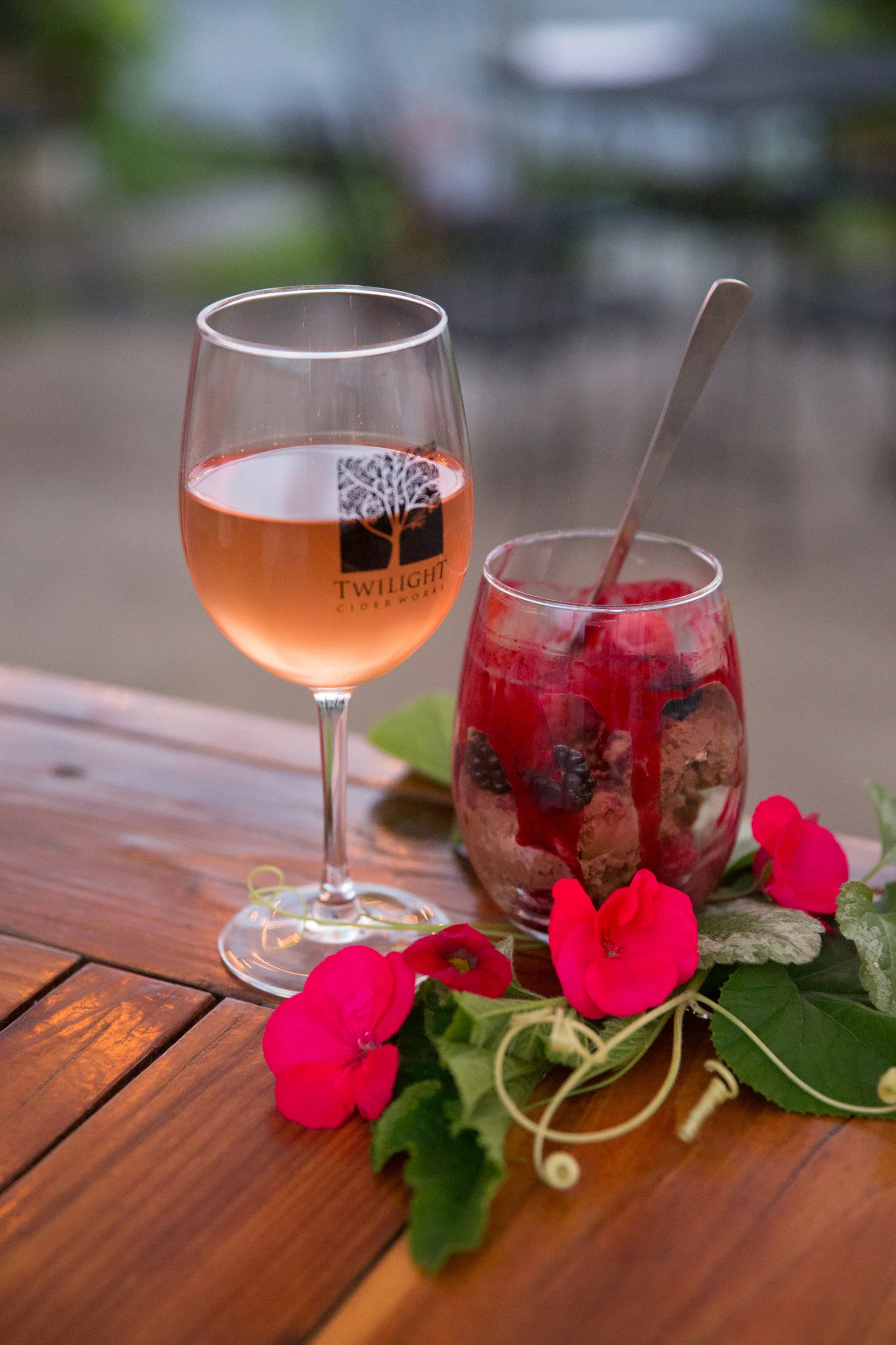 The grand finale of our dining experience was at Twilight Cider and it was the perfect magical ending to our time together. The owners of Twilight, Will and his wife, Jackie, were warm and welcoming and conversation was pleasant as we visited, took bites of our dessert and sipped on their delicious cider. The dessert that Greenbluff Catering had prepared for us was wonderfully delightful, it was a scratch made chocolate mousse served in a beautiful glass drizzled with blackberry syrup and garnished with fresh blackberries and raspberries. This was paired with Batch No. 8 botanical from Twilight which is a “carefully blended cider with a unique combination of botanicals of hibiscus, lavender, jasmine and rose hip.” This is the 8th cider blend that Twilight has produced. I love this story from the owners of how Twilight got its name: “The name Twilight Cider Works was inspired by my family's love of farming and maintaining orchards on Green Bluff, Washington. My wife and I often found ourselves helping our parents farm the orchards in the evenings and on weekends. The failing light between day and night was where our time was spent among the trees. Soon after, we decided to share with others the fruits of our labor, and Twilight Cider Works was born. We blend our ciders from apples grown in Green Bluff and fruit harvested from our families very own orchard.”